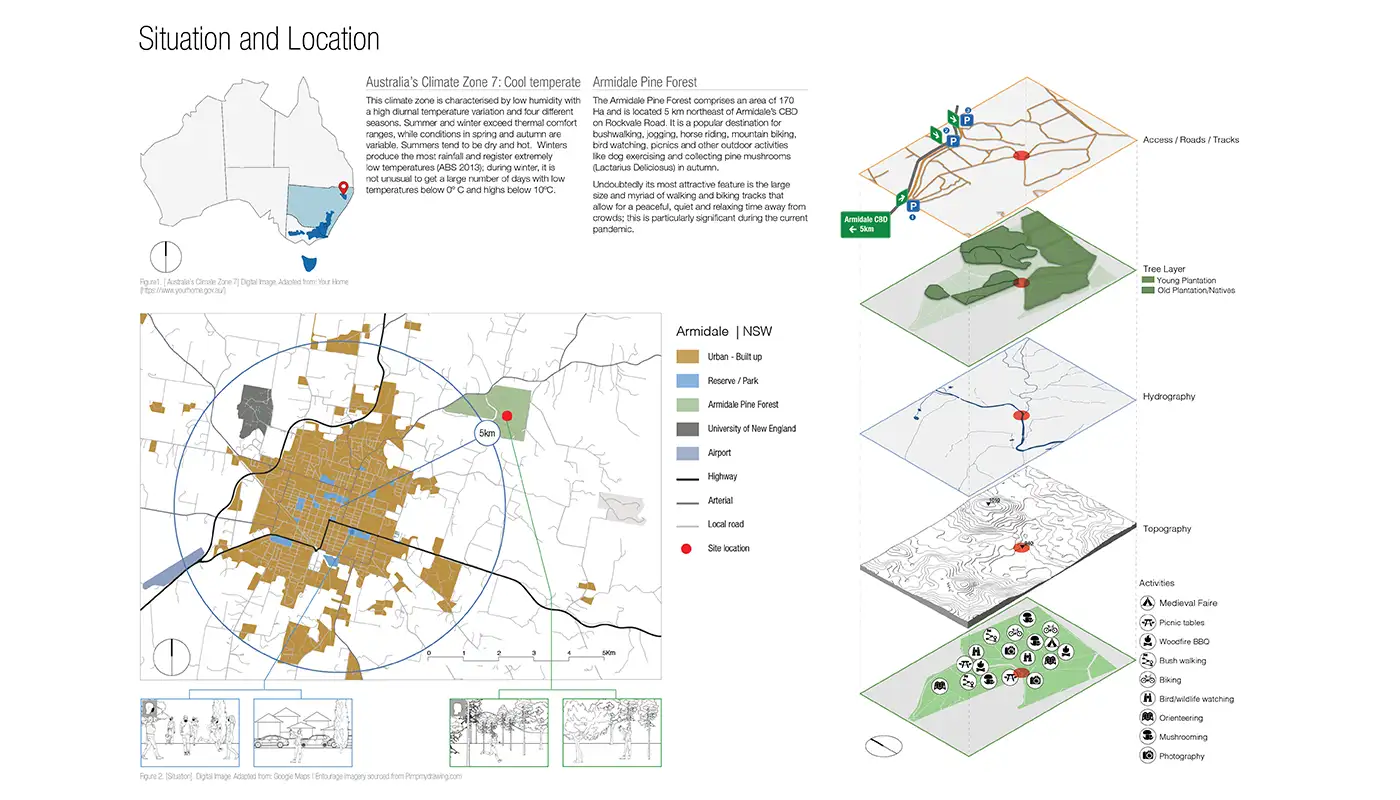 The tools used for the visualisation included Sketchup, Illustrator and Photoshop. The renderings were created as photomontages on photos of the actual site in Photoshop.